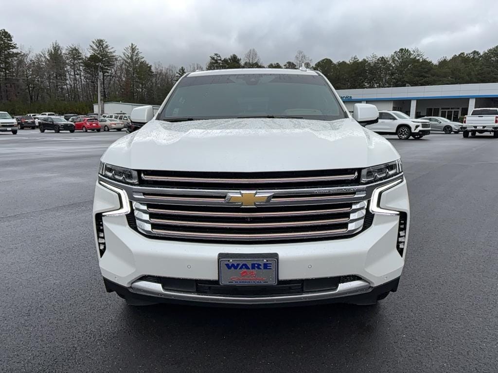 Advanced Trailering Package: Trailer Side Blind Zone Alert; Smart Trailer Integration Indicator; Integrated Trailer Brake Controller; Hitch Guidance with Hitch View. Max Trailering Package: Extra Capacity Cooling System; Extra Capacity Cooling System; Extra Capacity Cooling System. High Country Deluxe: Dual-Pane Power Panoramic Sunroof; Air Ride Adaptive Suspension; Power-Retractable Assist Steps; Adaptive Cruise Control; Dual-Pane Power Panoramic Sunroof; Air Ride Adaptive Suspension; Power-Retractable Assist Steps; Adaptive Cruise Control. Preferred Equipment Group 3LZ: Bright Front and Rear Door Sill Plates; Memory Settings; Stop/start System Disable Button; Perforated Leather Seat Trim; Remote Start; 3rd Row 60/40 Power-Folding Split-Bench Seat; Safety Alert Seat; Chrome Door Handles with Body-Color Strip; Hill Descent Control; 6.2L EcoTec3 V8 Engine; Rear Camera Mirror Washer; Inside Rearview Auo-Dimming Rear Camera Mirror; Heated Steering Wheel; LED Daytime Running Lamps; Rear Cross Traffic Alert; Wheels: 22" X 9" Sterling Silver Premium Painted; Driver and Front Outboard Passenger Airbags; Wireless Charging; Front High-Back Reclining Bucket Seats; Universal Home Remote; Color-Keyed Carpeting Floor Covering; Heated 2nd Row Outboard Seats; Hands-F