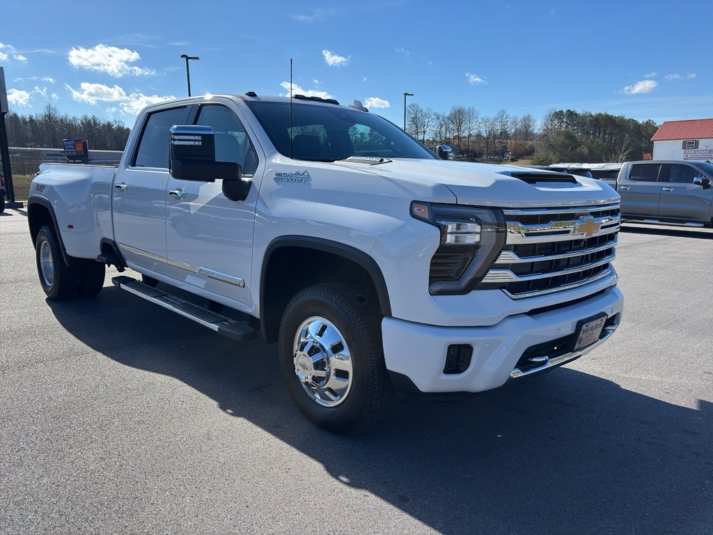 2024 Chevrolet Silverado 3500 High Country pristine condition, only 9,008 miles, located in Blairsville, GA. This powerful crew cab combines a stout 6.6L V8 diesel with 4WD for exceptional towing, hauling, and confident performance on pavement or trail. Low mileage and meticulous care mean you get near-new reliability without the new-vehicle price. Inside, upscale Leather Seats and a Heated Steering Wheel deliver comfort on every drive, while Android Auto keeps navigation and apps seamless. Safety features like Lane Departure Warning add peace of mind on long hauls. The Off-Road Package enhances capability with rugged suspension and protective components for demanding terrain. This High Country model blends premium amenities with heavy-duty functionality: robust diesel torque, advanced driver assists, and a refined interior perfect for both work and weekend adventures. Whether towing a fifth-wheel or handling steep mountain roads, this Chevrolet Silverado 3500 is ready. Located in Blairsville, GA, this Chevrolet Silverado is priced to sell the best price available for a low-mileage, diesel-powered 3500 High Country in the area. Donât miss the chance to own a premium, ready-to-work truck that still feels like new. Contact us today to schedule a test drive and see why this is the smart buy for capability and value.